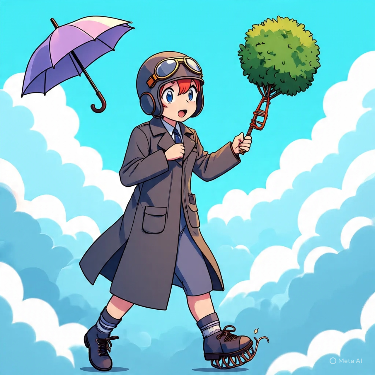 Y justo al saltar, se rompe la nube. Caen, pero como estamos en la historia, caemos… despacio. Como plumas. Y aterrizan en un tejado de una casa hecha de nubes blancas, con ventanas de algodón. Y ahí está: un casco. Pero no uno normal. Es un casco de patinete, rosa chillón, con orejas de gato. -¿Y si lo usamos? -dice desde mis zapatos. -Total. Si nos mata, al menos lo hago con estilo. Me lo pongo. Y en ese momento, el casco se transforma: se hace casco de avión, con gafas redondas. Y empieza a flotar. Vos también. Yo también. Y desde arriba vemos la ciudad entera: calles de papel, autos de origami, gente que camina hacia atrás. Todo por culpa del cambio que hicimos. Y de pronto, un aviso en el aire: Advertencia: el destino se vende por kilogramo. ¿Bajamos a comprar un poco? ¿O seguimos flotando?